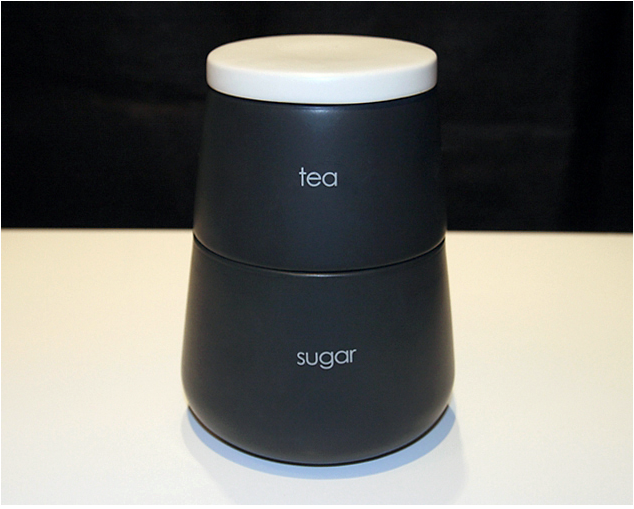 Porselen İki Katlı Çay Şeker Saklama Kabı (Siyah)