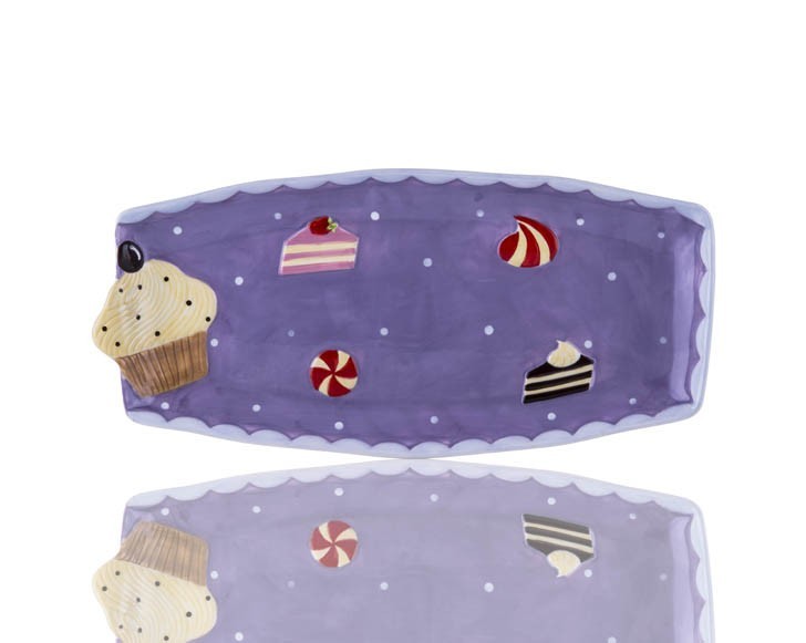 Porio Puantiyeli Mor Cupcake Kayık Tabak