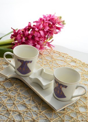 Perotti 2 Kişilik Porselen Kaftan Tepsili Kahve Seti (Mor)